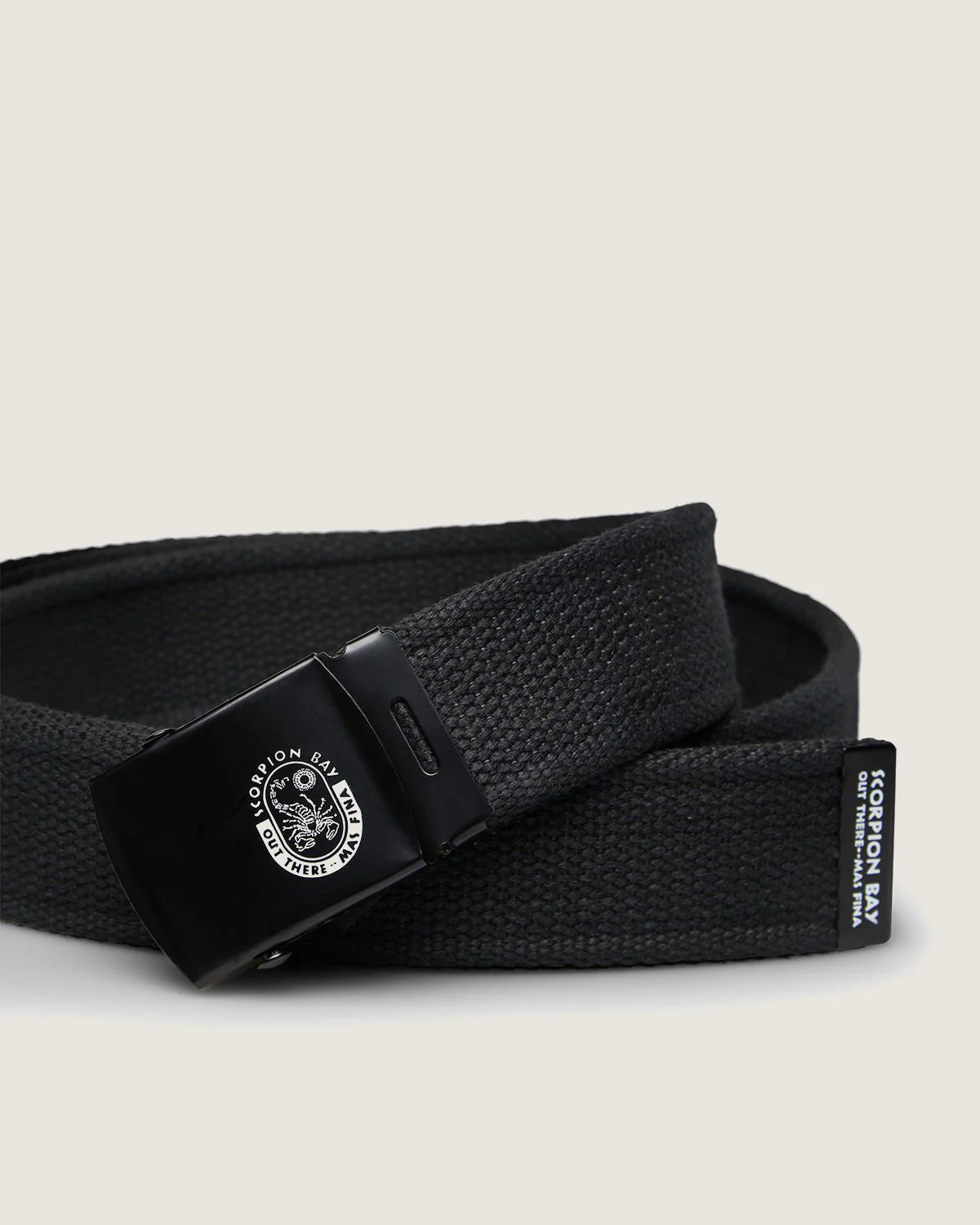 Cintura in corda nera. Fibbia scorrevole in metallo regolabile con logo stampato. Personalizzazione sul fondo.
