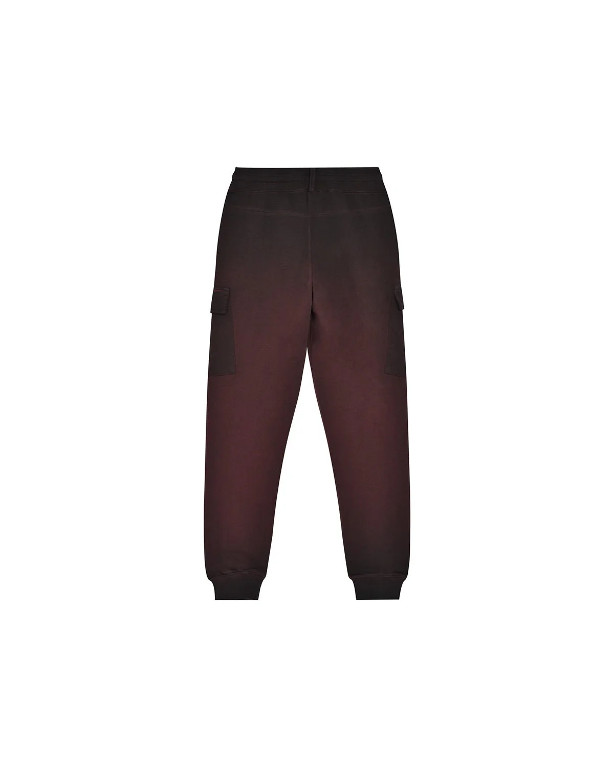 Pantaloni in felpa uomo color rosso mattone. Classico stile jogger con vita e polsini elasticati e coulisse a stringere. Due tasche cargo. Effetto vintage dato dal lavaggio.