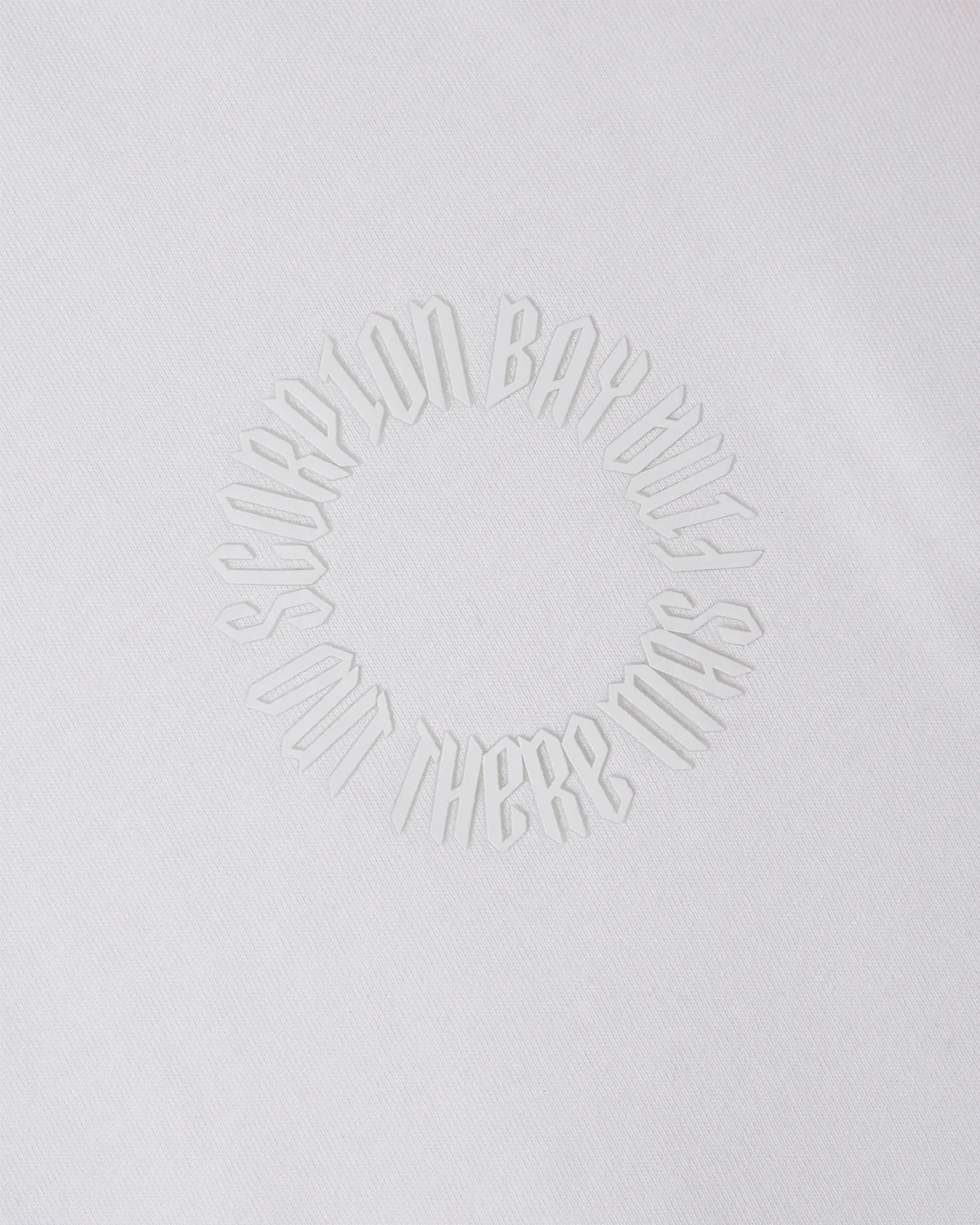 T-shirt essential uomo color bianco. Scritta stile gotico in rilievo stampata a petto tono su tono.